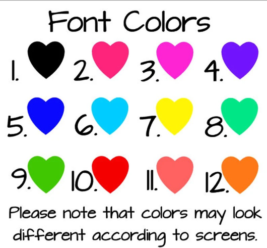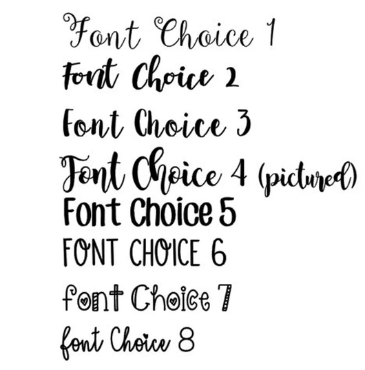 3) In the personalization field, put the name you would like along with what color and Font Style Choice you want. If no font style and color are chosen, you will receive the font and color from the sample photo.